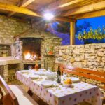The villa covers a total area of ​​202 m² (useful 145 m²) and is located on a plot of 580 m². It is arranged over three floors and includes three spacious bedrooms, three bathrooms and a pleasant living area that combines the living room, dining room and kitchen. The interior exudes warmth and character thanks to the indigenous stone, exposed wooden beams and wooden floors, creating an authentic rustic atmosphere with all the advantages of modern living. The kitchen is functionally and aesthetically decorated, combining traditional elements with modern design.