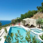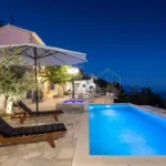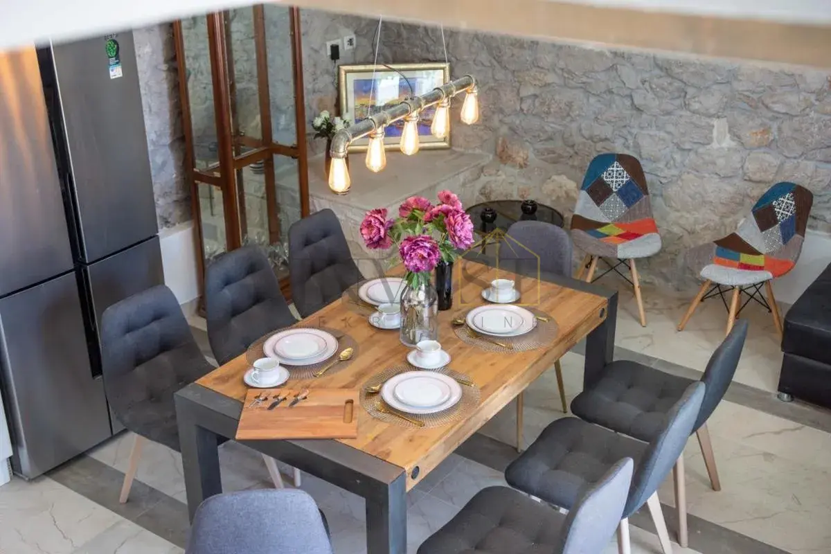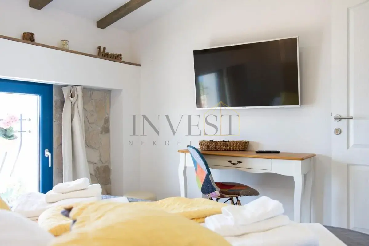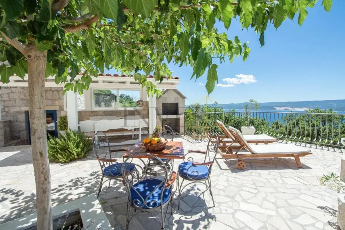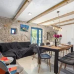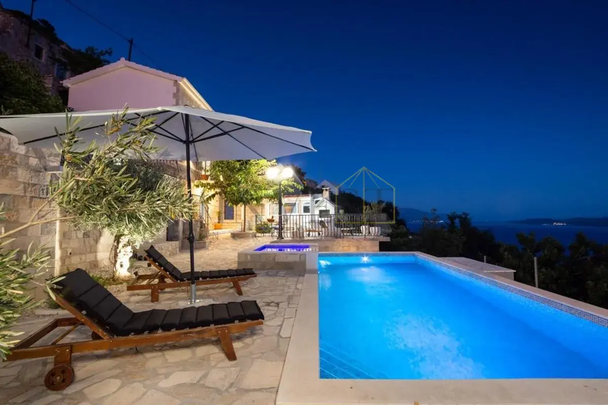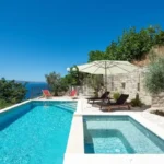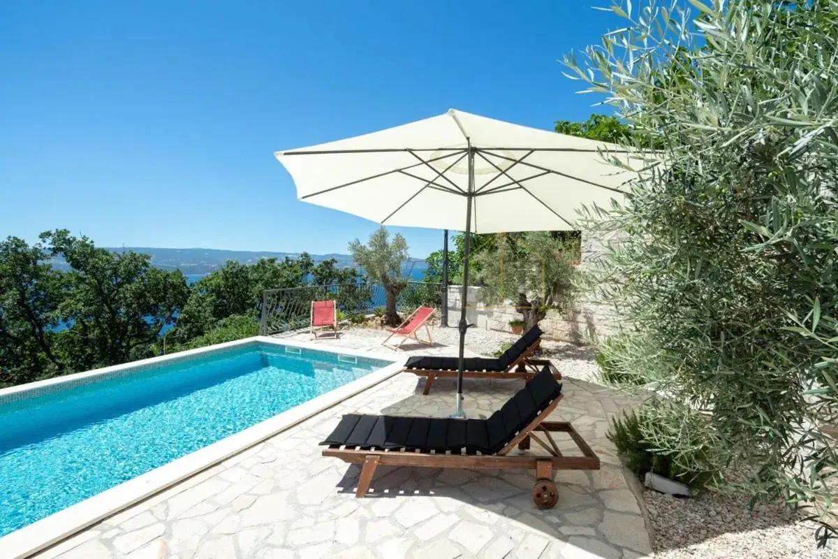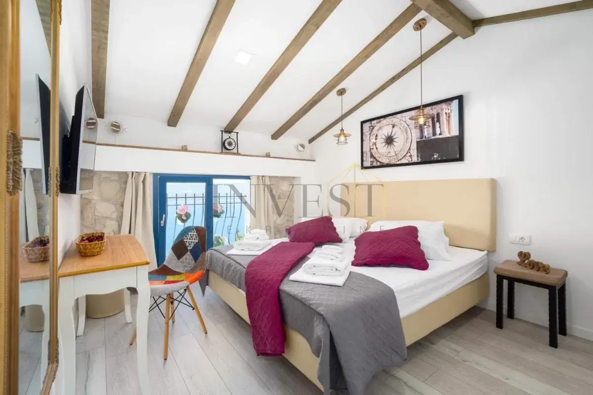 For sale is an exclusive stone villa with a swimming pool and a breathtaking panoramic sea view, located in a quiet and secluded setting that guarantees complete privacy and supreme comfort. This unique property perfectly combines the authentic Mediterranean style of construction with modern luxury, creating an ideal retreat for a vacation or investment in high-class tourism. The villa with a total living area of ​​120 m² is located on a plot of approximately 500 m² and has four bedrooms and three elegantly decorated bathrooms, with a capacity to accommodate up to eight people. The property was completely renovated in 2018, with special attention paid to the quality of materials and functionality of the space. Parking for three cars is also provided. It is designed as two separate residential units, which allows for flexible use – whether for private needs or for tourist rental. The spacious living room naturally continues onto the outdoor space, which is a true oasis of relaxation, with a carefully landscaped yard and numerous amenities to enjoy throughout the year. The outdoor area includes a 28 m² heated swimming pool, a jacuzzi area, a covered terrace and a balcony with an open sea view, as well as a built-in barbecue with a space for socializing. The interior of the villa is further enriched by a fireplace that provides a cozy atmosphere during the winter months, underfloor heating in the bathrooms and air conditioning in all key rooms. The location of the villa is extremely attractive – only 500 meters away from a beautiful beach, while Omiš is 3 km away and Split is 30 km away. There is a restaurant and a shop nearby, while cycling and hiking trails are only 200 meters away. Special advantages of this property include complete privacy, a quiet environment without noise, a spectacular sea view and a combination of traditional stone construction and modern amenities. Thanks to its location and equipment, the villa represents exceptional potential for high-class tourist rental, but also a perfect private oasis for escaping everyday life. For more information and details, feel free to contact us at +385 (0)95 5759 100 (Luka) or luka@investnekretnine.com