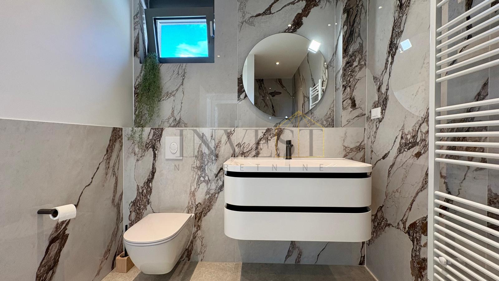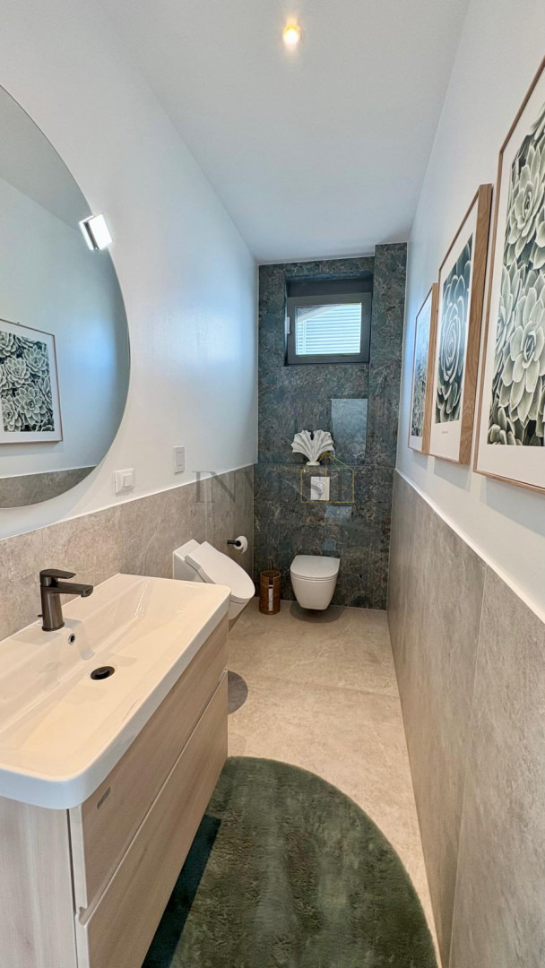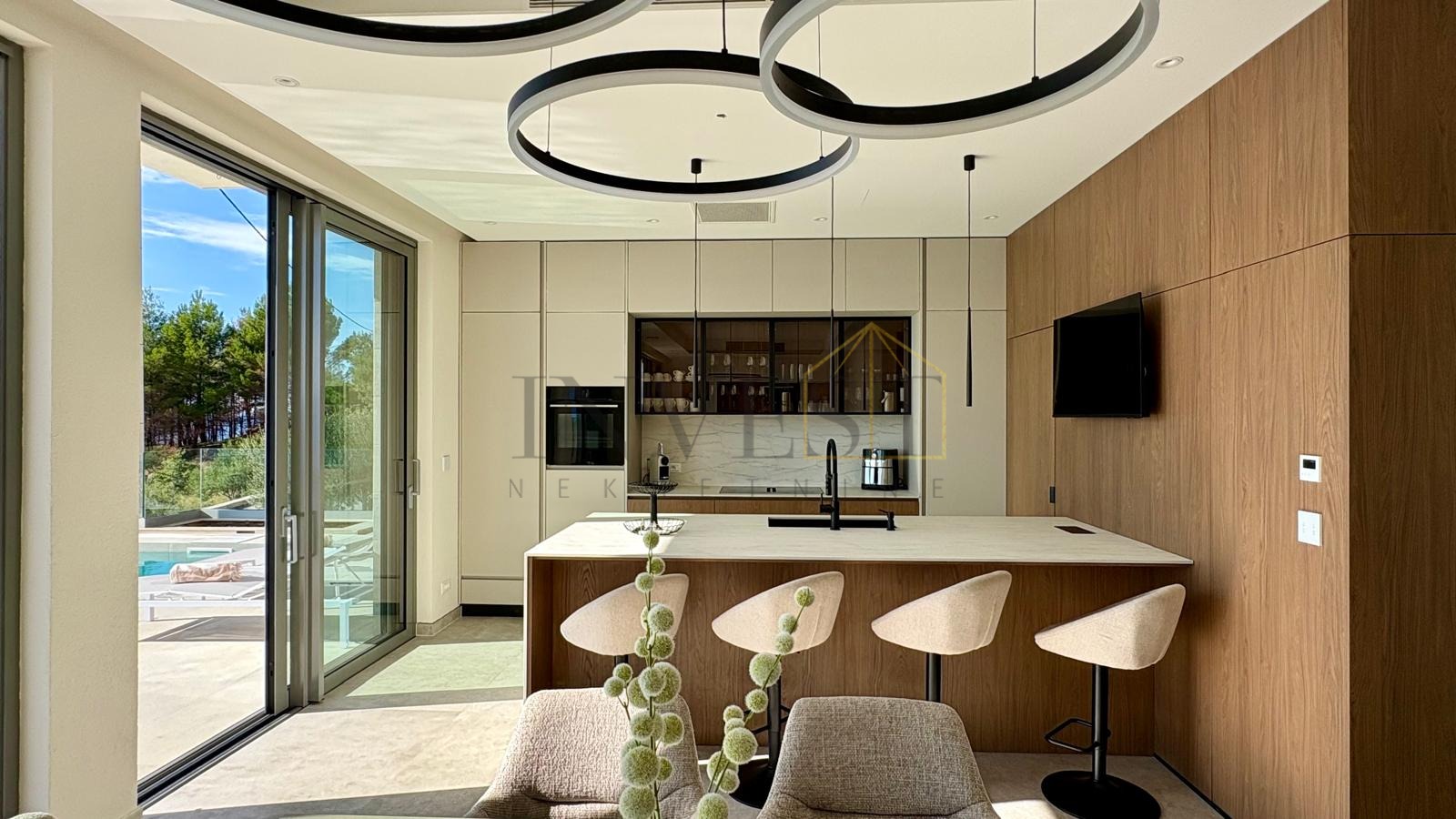 U prodaji je luksuzna vila smještena u mirnom i privatnom okruženju, samo 300 metara od mora. Ova impresivna nekretnina prostire se na 355 m² stambenog prostora i nalazi se na zemljištu od 440 m². Prizemlje vile nudi funkcionalni prostor s garažom, dodatnim parkingom, spremištima, strojarnicom, prostorijom za rekreaciju i spa zonu. Na prvom katu nalazi se svijetli dnevni boravak s blagovaonicom i modernom kuhinjom, uz izlaz na prostranu terasu s ljetnom kuhinjom, sunčalištem i grijanim bazenom s elektrolizom, idealno za odmor i zabavu na otvorenom. Na gornjem katu smještene su tri luksuzne spavaće sobe, svaka s vlastitom kupaonicom i terasom s otvorenim pogledom na more. Vila je opremljena podnim grijanjem u cijelom objektu, aluminijskim otvorima, smart home tehnologijom i otvorenim konceptom dnevnog boravka, kombinirajući udobnost, moderni dizajn i praktičnost. Ova nekretnina predstavlja savršen izbor za obiteljski život, odmor ili kao investicija u turistički najam. Luksuz, privatnost i blizina mora spojeni su u jednom objektu koji nudi visoki standard življenja. Za više informacija, tlocrt objekta i dogovor oko obilaska, slobodno nas kontaktirajte na +385 (0)95 5759 100 (Luka) ili luka@investnekretnine.com