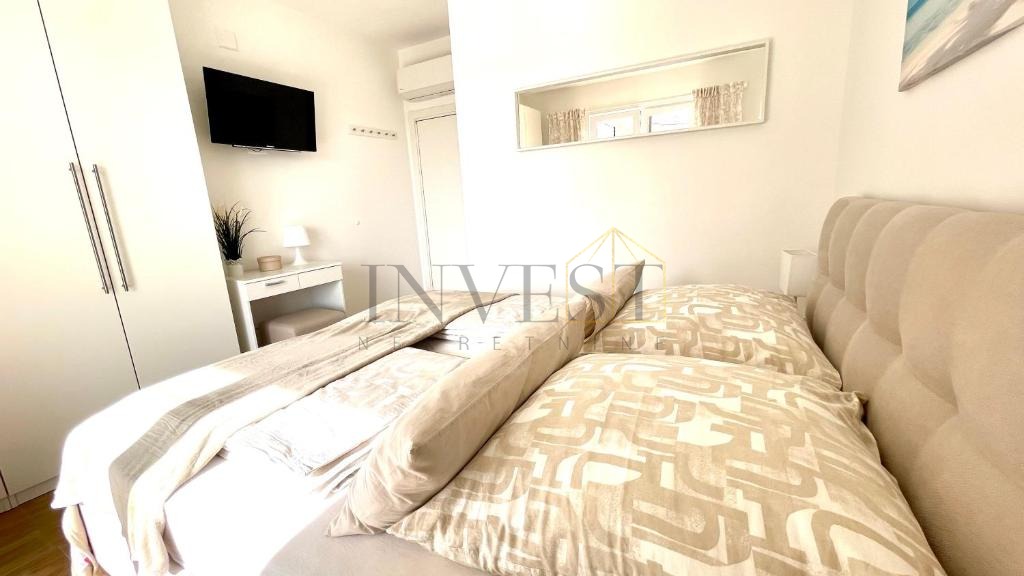 Stan ima tri spavaće sobe, prostrani dnevni boravak s izlazom na terasu, potpuno opremljenu kuhinju, te dva moderna kupatila s tušem. Jedna od soba također ima izlaz na terasu. Stan je klimatiziran i spreman za udoban život ili turistički najam.
