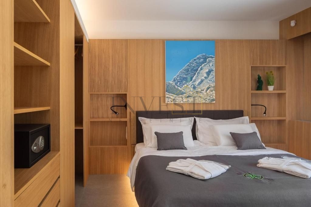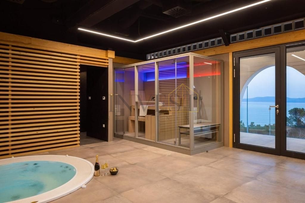 U prizemlju vile nalaze se prostorije za energetsku učinkovitost, glavna strojarnica, natkriveno parkiralište s punionicom za električna vozila, pružajući moderna rješenja za udoban boravak. Na prvom katu nalazi se wellness centar opremljen luksuznim sadržajima, prostrani dnevni boravak, potpuno opremljena kuhinja i tri elegantne spavaće sobe s privatnim kupaonicama. Drugi kat nudi osvježenje u obliku velikog bazena, hidromasažne klupice i sunčališta, savršenog za opuštanje i uživanje.