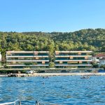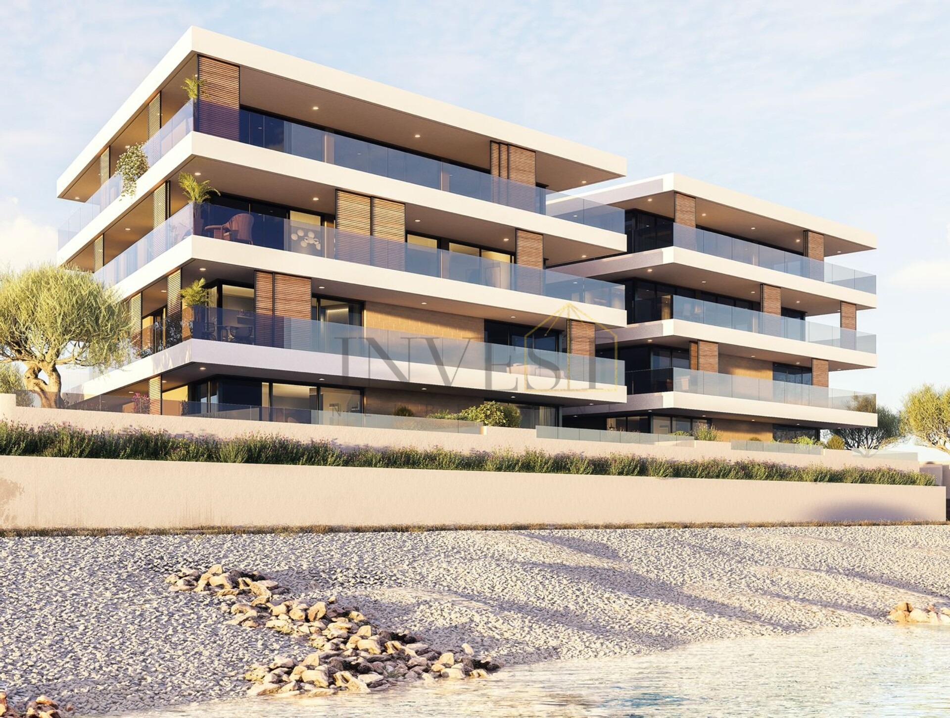Na prodaju je luksuzan stan na drugom katu zgrade u Slatinama na otoku Čiovu. Smješten je u prvom redu do mora u moderno dizajniranoj zgradi s privatnim bazenom namijenjenom isključivo stanarima što osigurava privatnost i visoki komfor. Stan površine 247 m² ima prostrani open space dnevni boravak s kuhinjom i blagovaonicom, tri spavaće sobe sa vlastitim kupaonicama, garderobu, hodnik te ostavu i praonicu. Velika terasa i balkon nude otvoren pogled na more, a uz stan dolaze dva garažna parkirna mjesta uključena u cijenu. Zgrada je građena prema visokim standardima luksuzne gradnje s kvalitetnim materijalima i modernim dizajnom, a lokacija omogućuje brz pristup svim sadržajima.