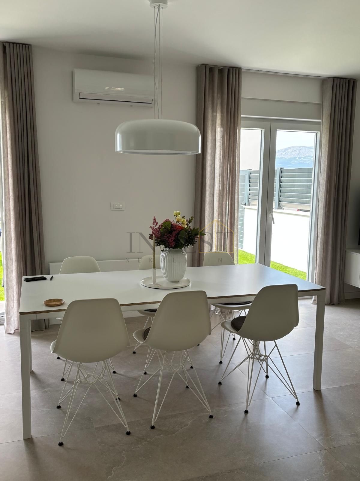 Stan ima pripadajuće parking mjesto 12,3 m2, te vanjsku ostavu 15 m2. Udaljenost od mora iznosi samo 200 metara, a do grada Splita 10 min vožnje. U blizini se nalaze svi potrebni sadržaji za svakodnevni život, trgovine, restorani, škola, vrtić, javni prijevoz i dr.